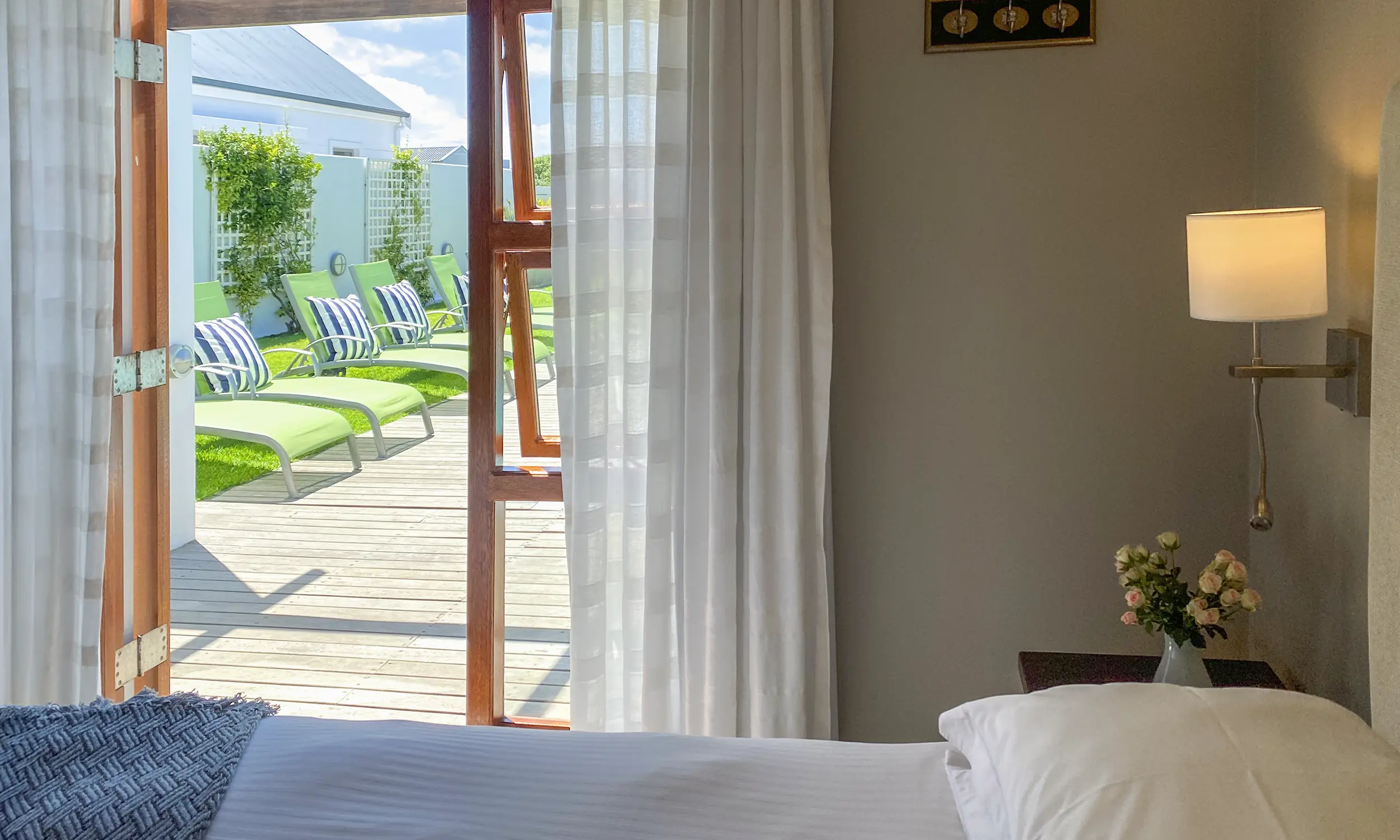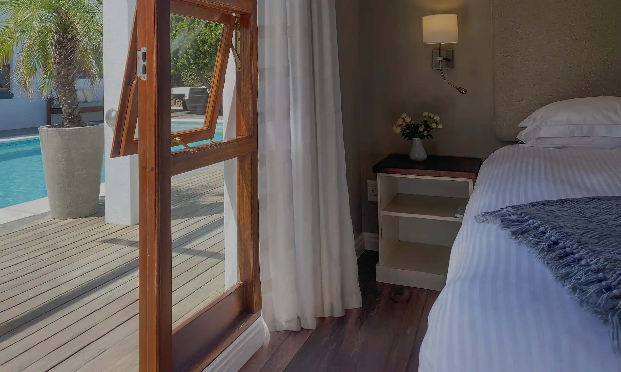 Open your door and dive into paradise!Cozy guest rooms directly by the poolside, just a short walk from the heart of Hermanus